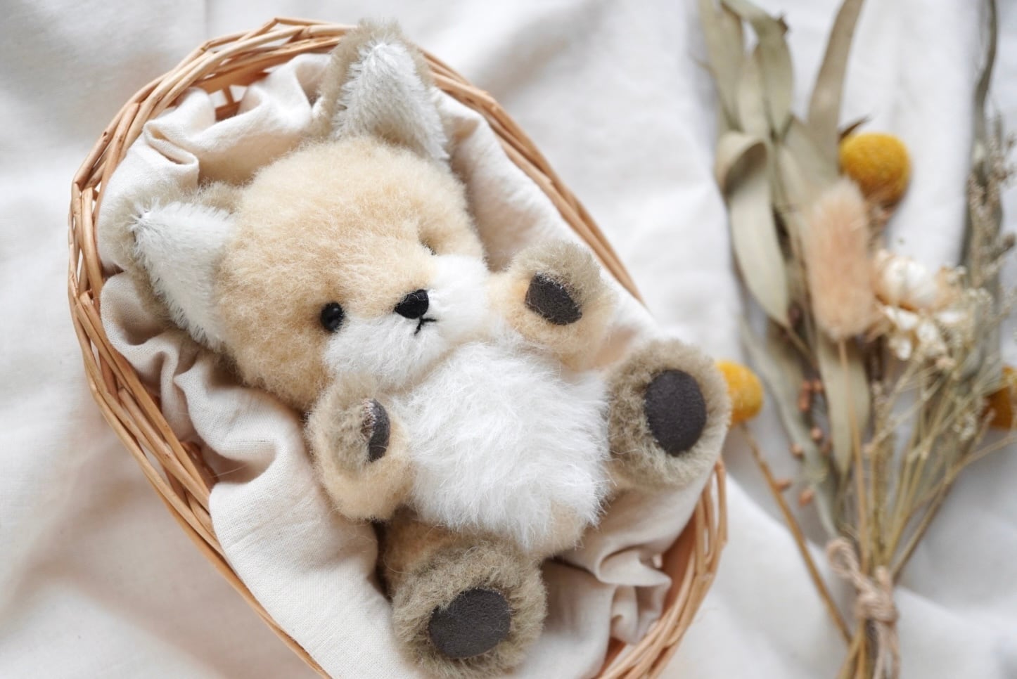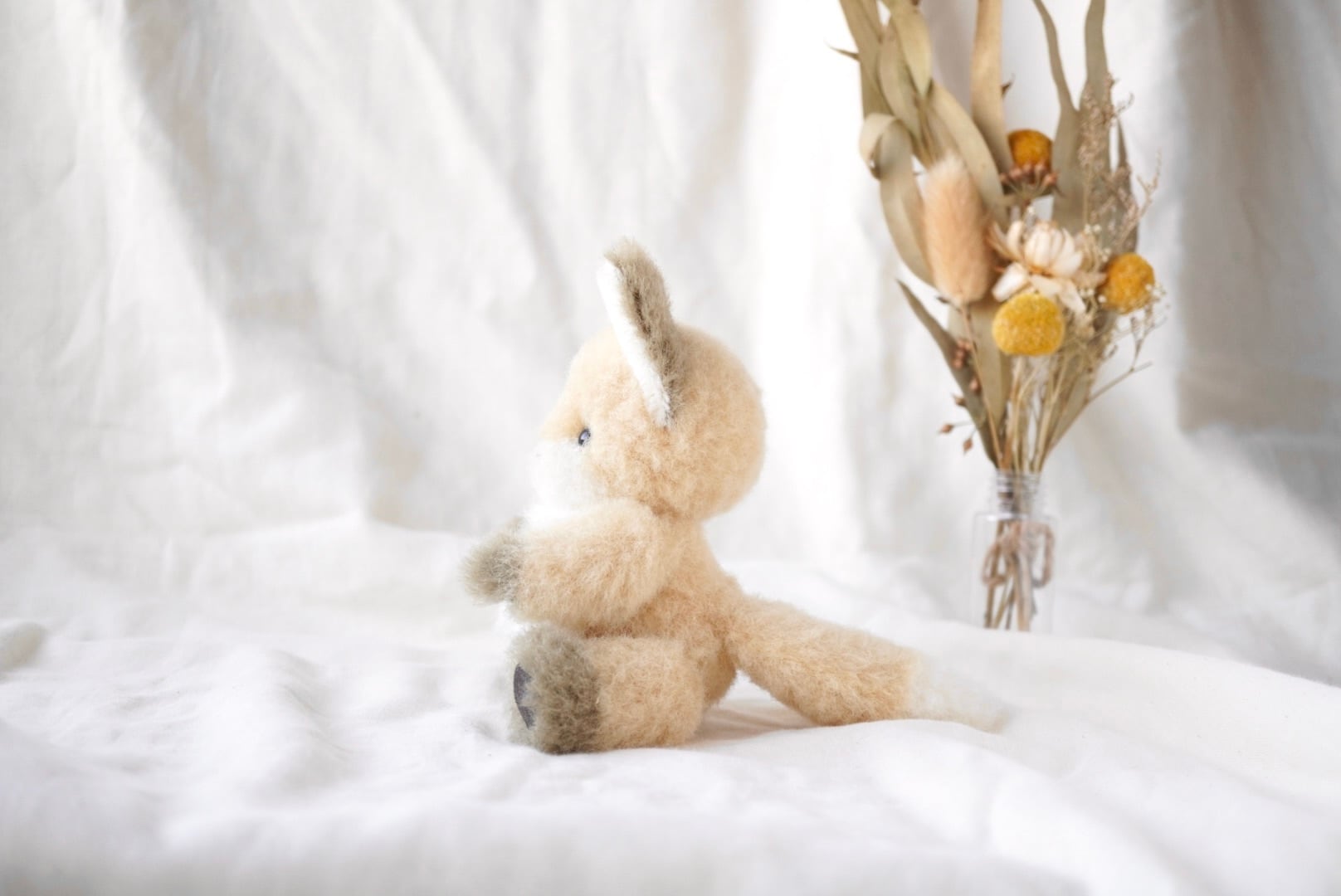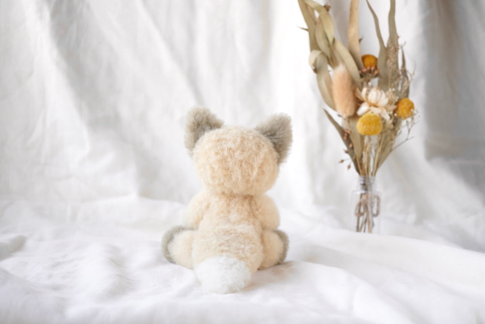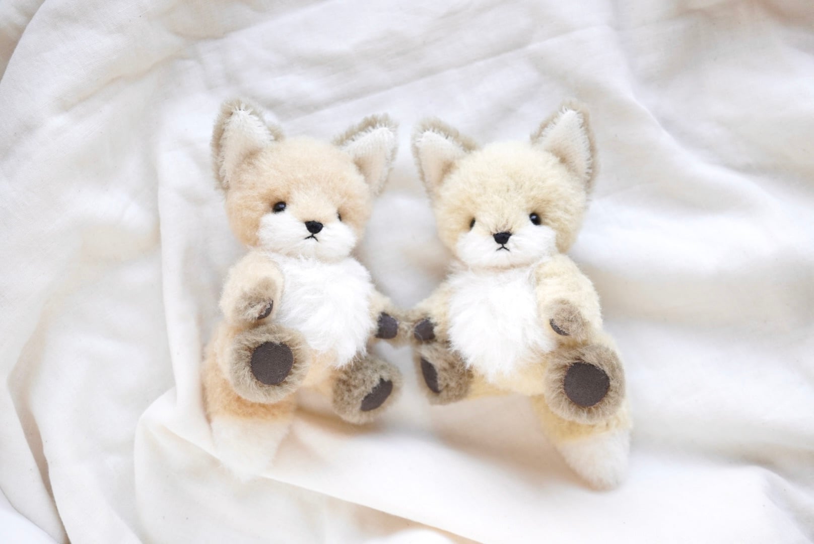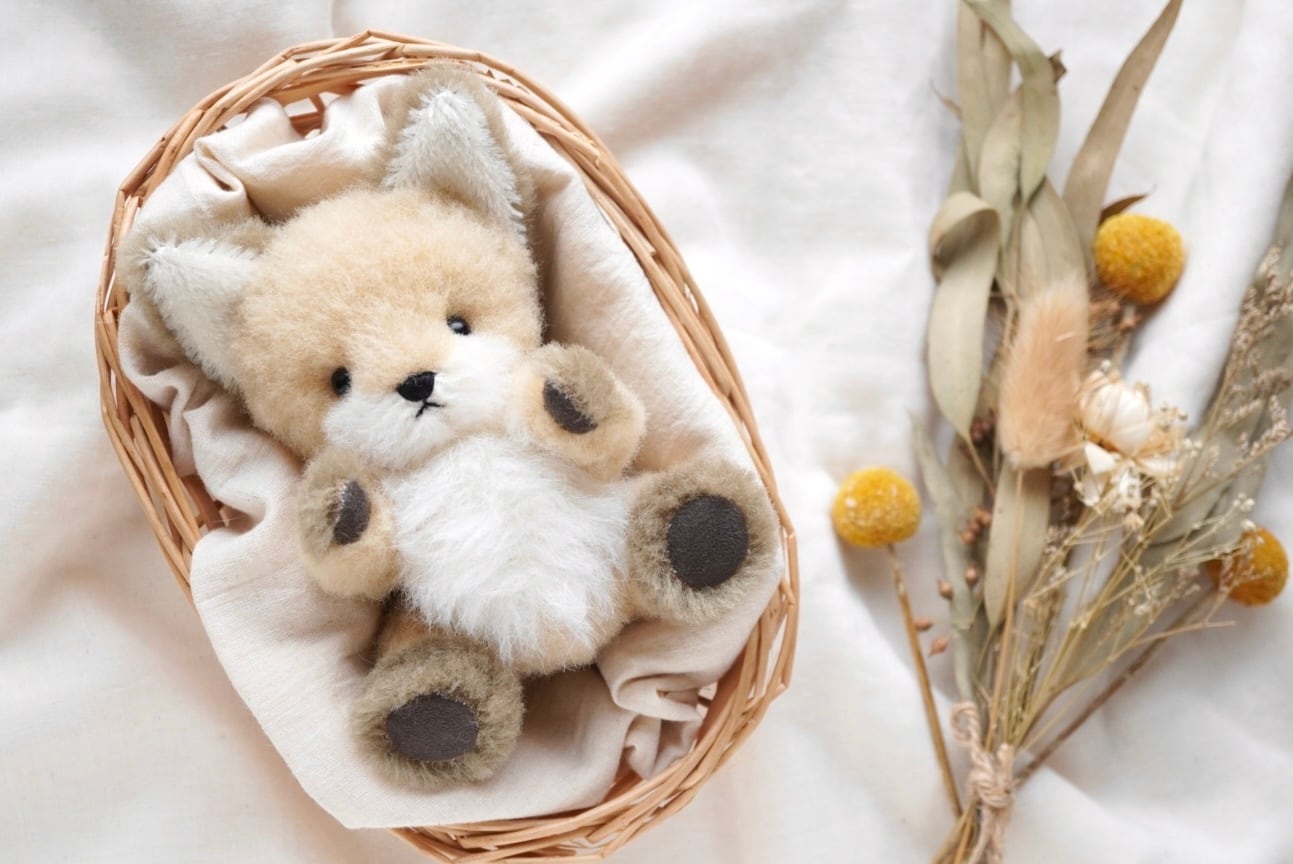ウール生地のこぎつねぬいぐるみです。