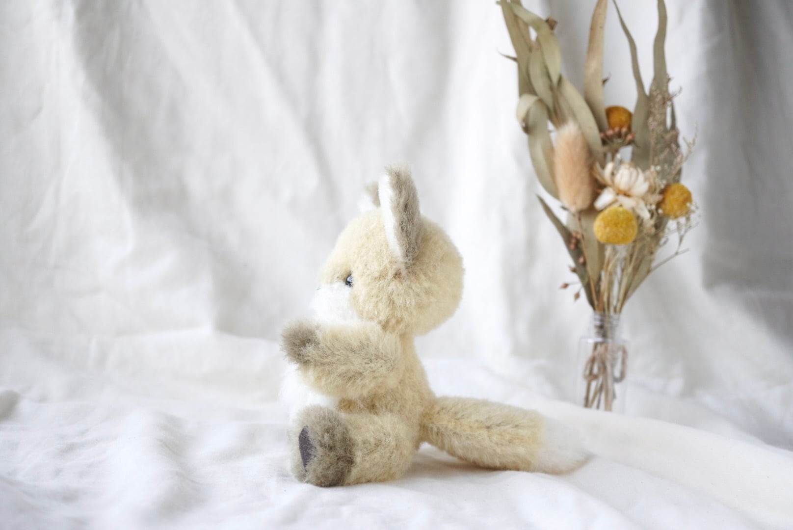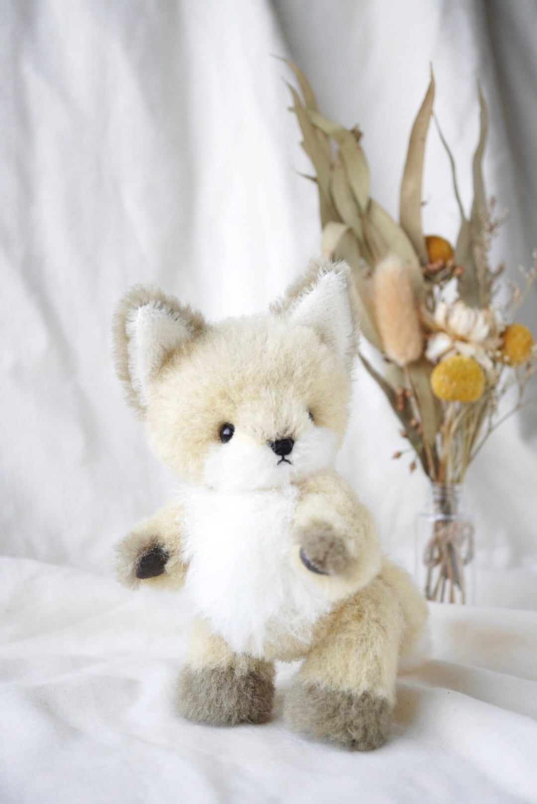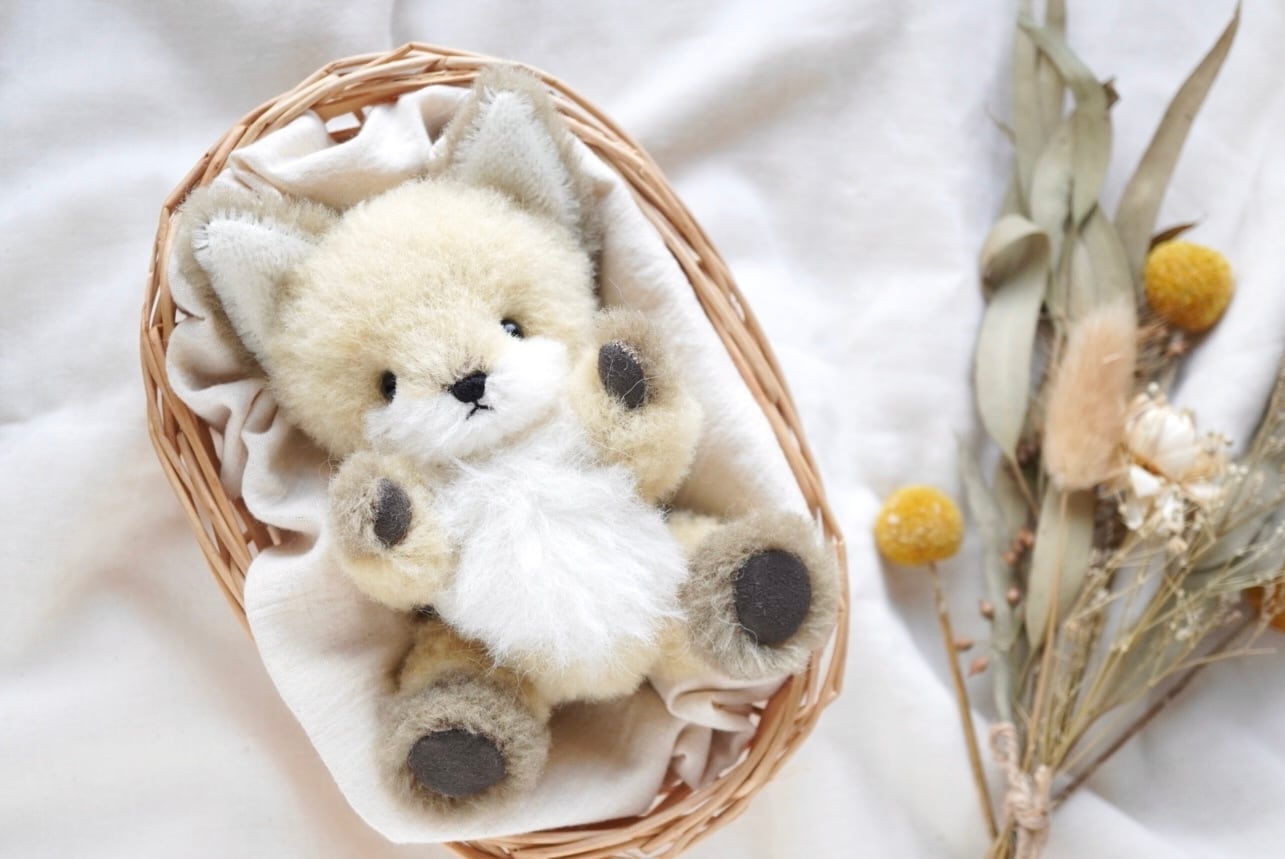 ウール生地のこぎつねぬいぐるみです。
